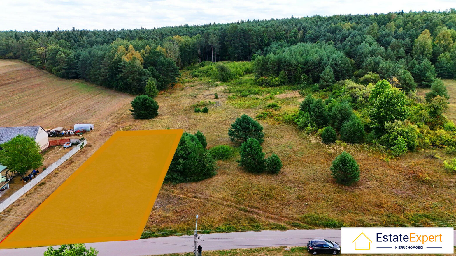 Idealna lokalizacja: Działka w pierwszej linii zabudowy z komfortowym, bezpośrednim zjazdem z drogi asfaltowej.